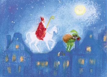 Kaartje St Nicolaas en Piet op het dak
